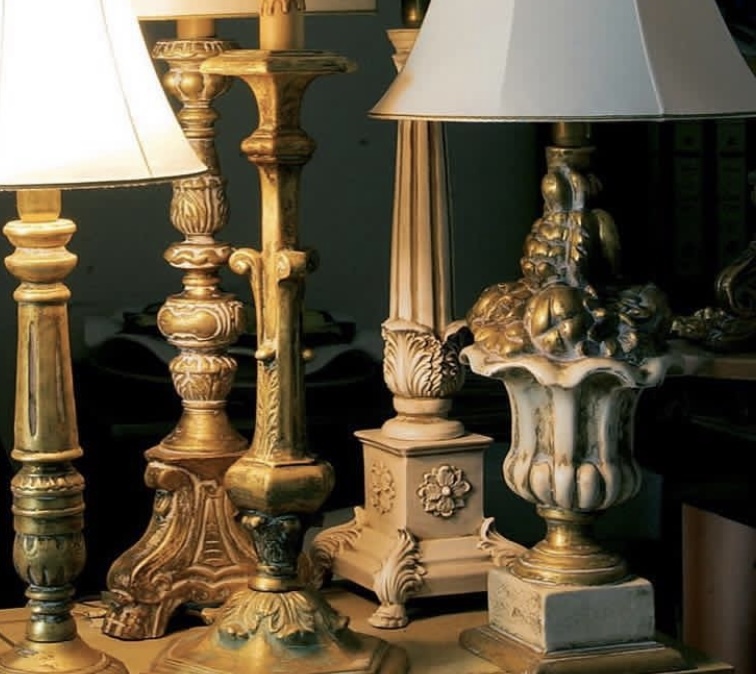 Стильная настольная лампа, которая отличается своей сложной резьбой и прекрасно сочетается с фантазиями классической мебели люкс в стиле барокко.