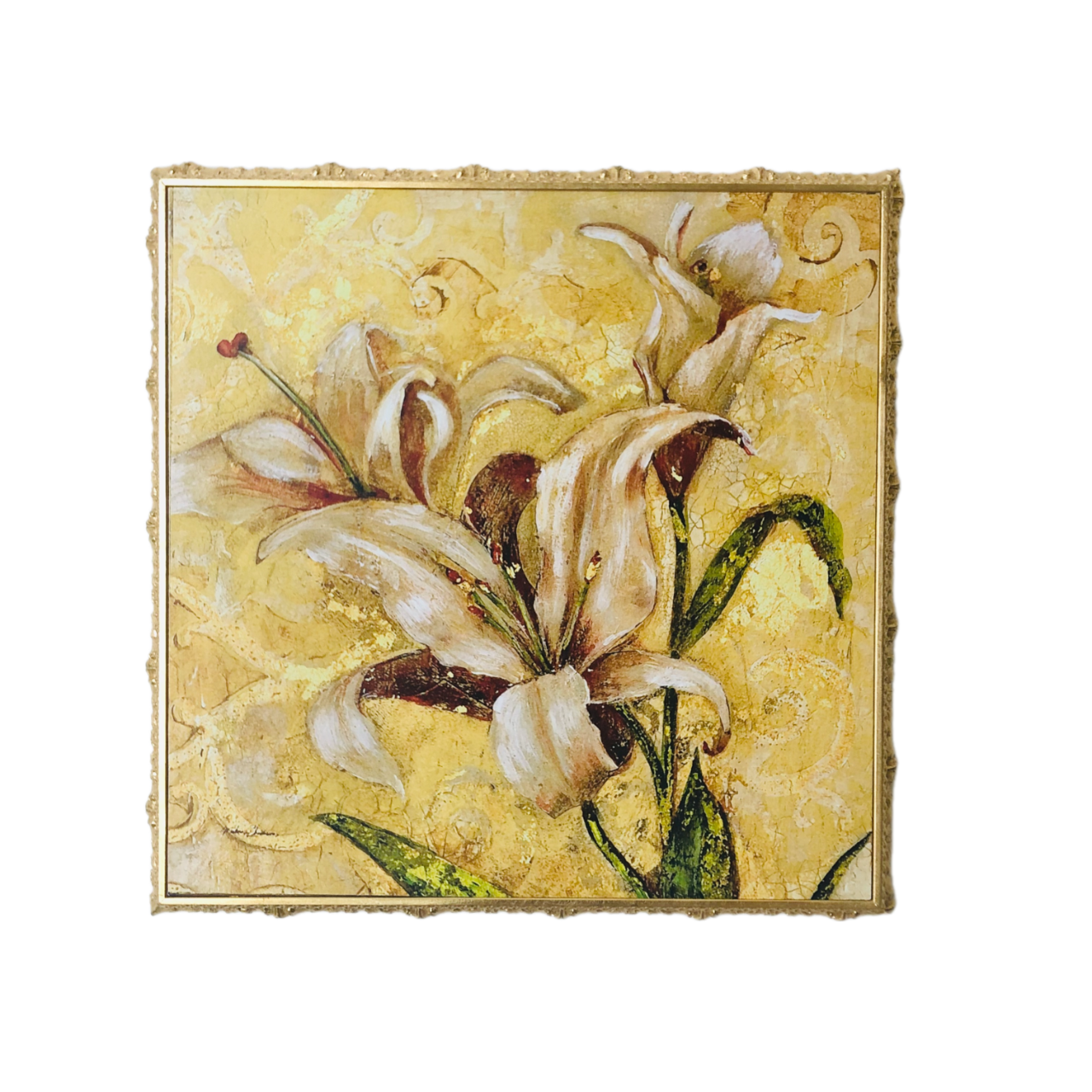 Украсить стену картиной с изображением изысканных лилий – значит, привнести в интерьер атмосферу чистоты и свежести. Лилии настолько натуралистичные, что кажется, будто по комнате вот-вот поплывёт нежный аромат. Материал рамы – массив дерева, пропитанный натуральным воском.