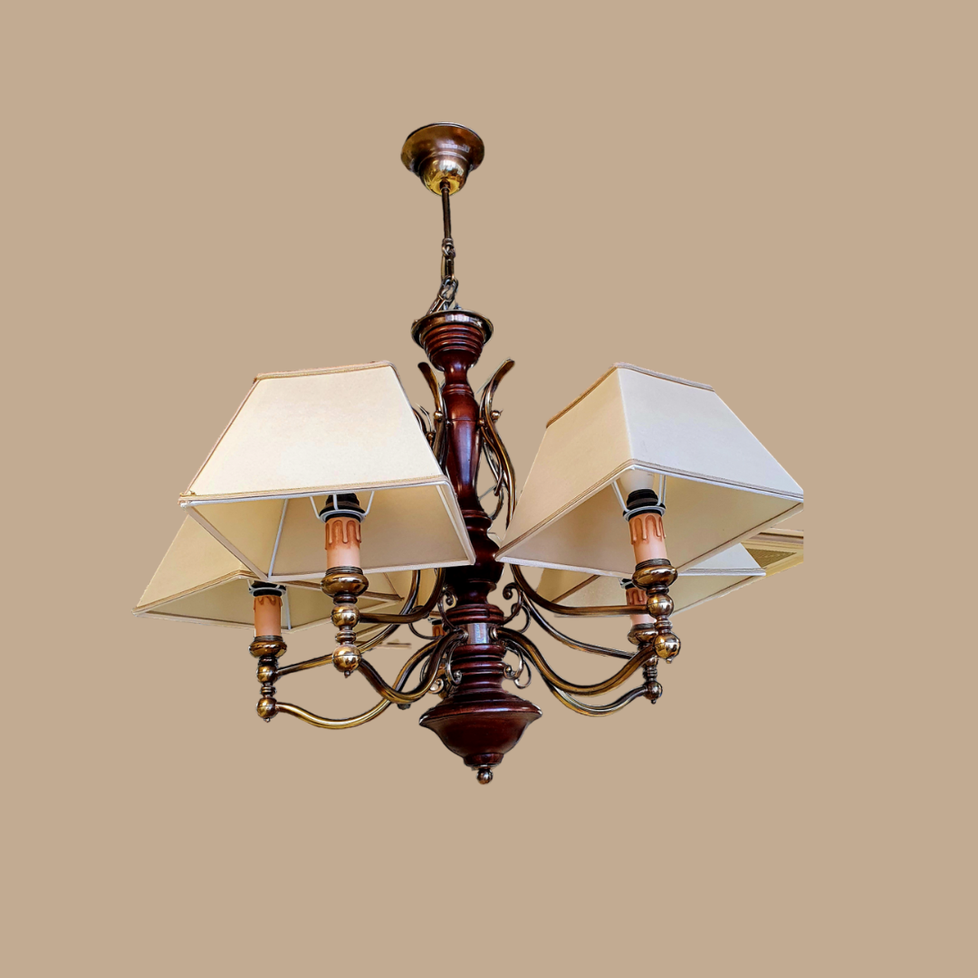 Люстрра с прямоугольными абажурами на 5 рожков.