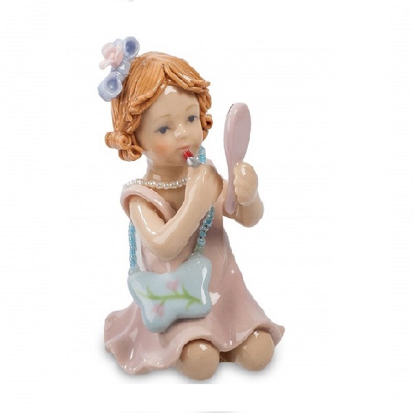 Фарфоровая фигурка Маленькая модница прекрасно впишется в Ваш интерьер и займёт достойное место на полке. Девочка, красящая свои губки и смотрящая в зеркальце, будет отлично смотреться в детской комнате для маленьких принцесс!
