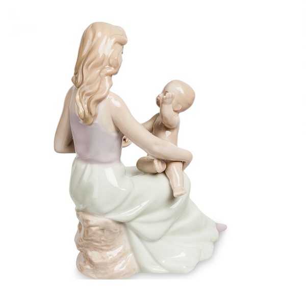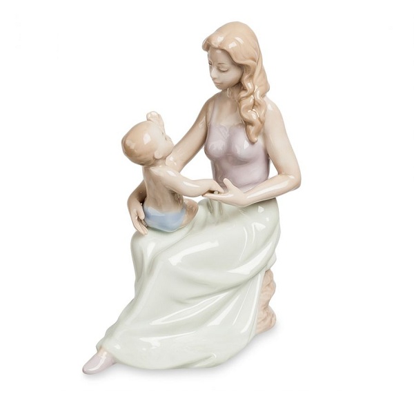 Подарочная статуэтка в виде мамы с сыном. Статуэтка выполнена из глазурованного фарфора. Красивая фарфоровая статуэтка станет замечательным подарком женщине на торжество!
