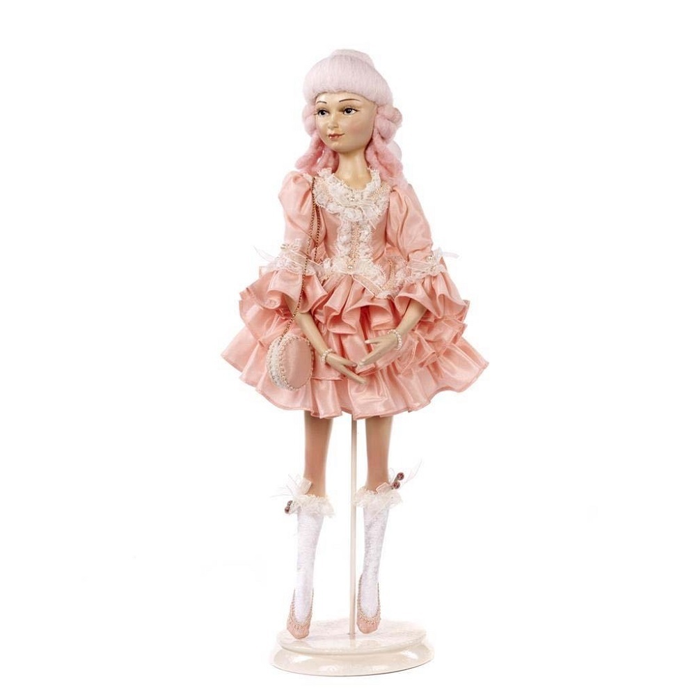 Мария Антуанетта - кукла декоративная наряжена в сценический костюм, представляющий собой короткое розовое платье, высокие белые чулки и розовый парик, которые придают образу яркости и нестандартности. Кукла ручной работы будет интересно смотреться среди остального ёлочного декора или в виде самостоятельного украшения интерьера не только в Новый год. Ограниченная серия. Ручная работа.