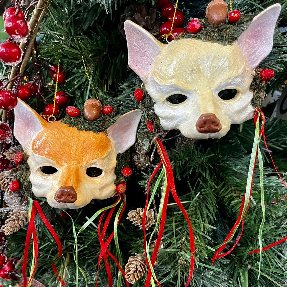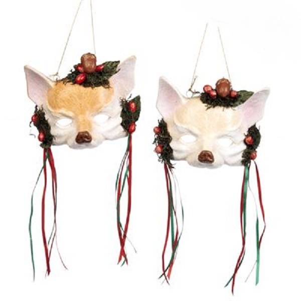 Игрушка в виде маски рыжей лисички с ушками, декорирована лентами и ягодами. Станет прекрасным украшением новогодней ёлки!