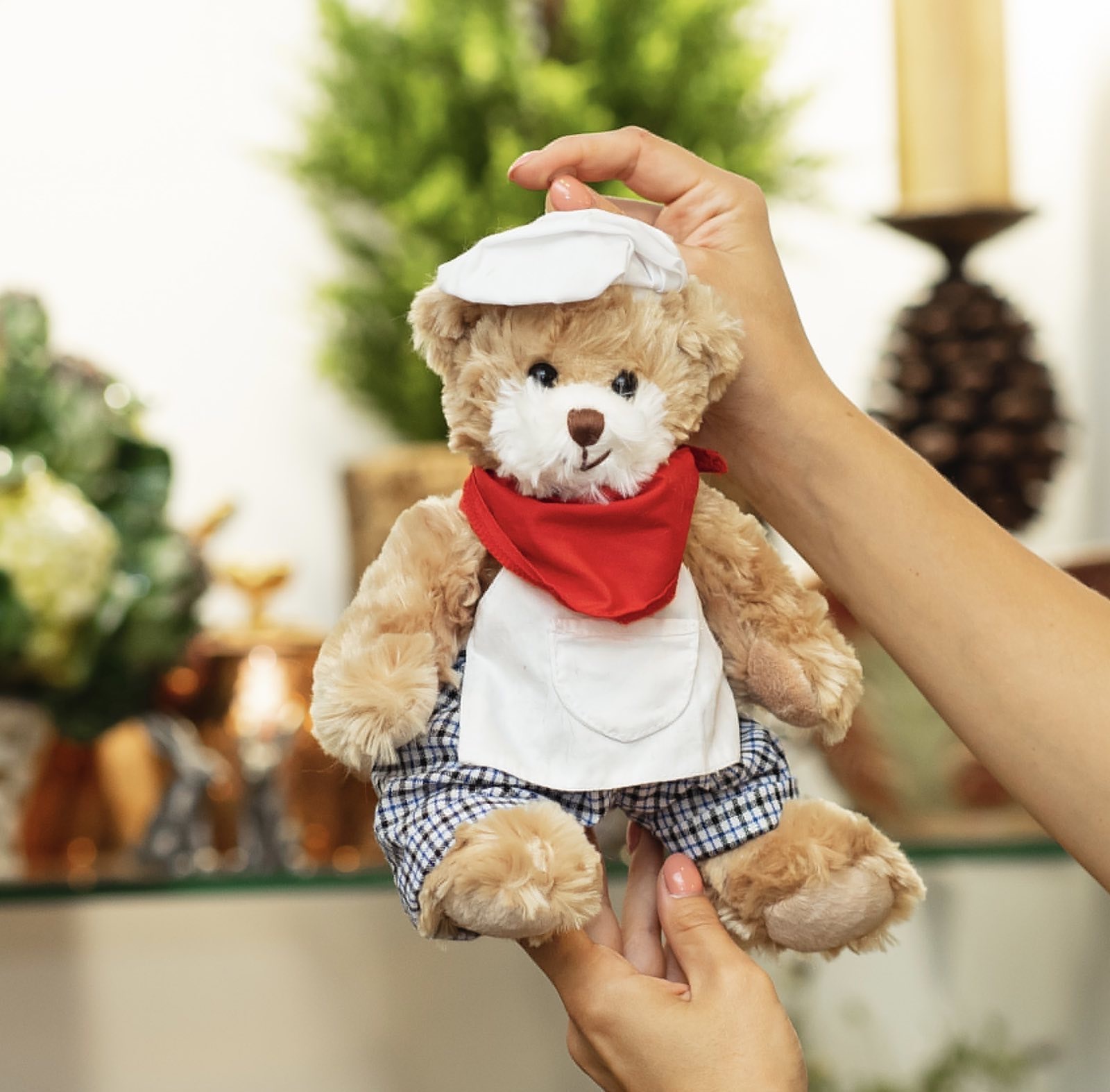 Познакомьтесь с МастерЧифом! Самым умным, талантливым и дружелюбным мишкой на свете. Он работает шеф-поваром. Посмотрите, как ему идёт эта форма!