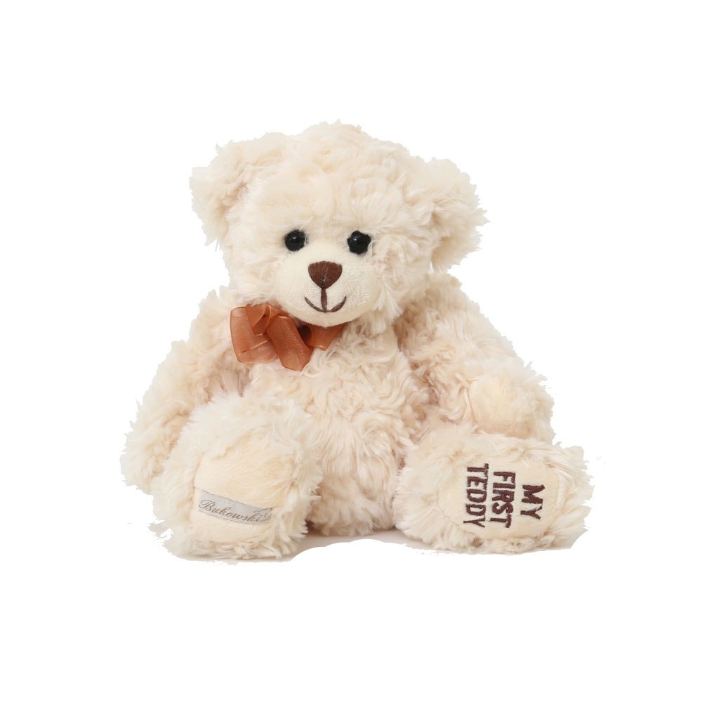 Пушистый мишка молочного цвета с бантом, очень приятный на ощупь, имеет вышивку на лапке "Мой первый мишка", прекрасный подарок на рождение ребёнка.