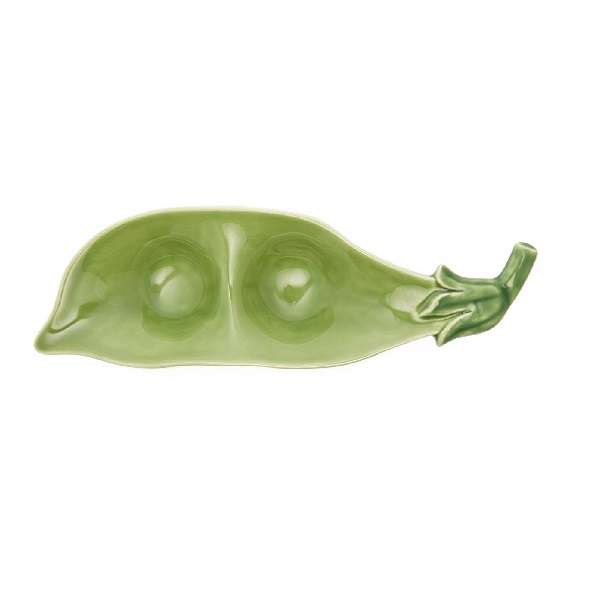 Блюдо фигурное изготовлено из качественной керамики высшего класса в стиле майолика. Изготовлено в виде половинки стручка гороха, раскрашено вручную и стоит на двух горошинах, на одном конце блюда есть зеленый хвостик, что даёт необыкновенное сходство с настоящим горохом. В таком эксклюзивном блюде можно подавать соусы, холодные закуски. Вся поверхность изделия глянцевая благодаря покрытию влагостойкой глазурью. Можно мыть в посудомоечной машине и ставить в микроволновую печь.
