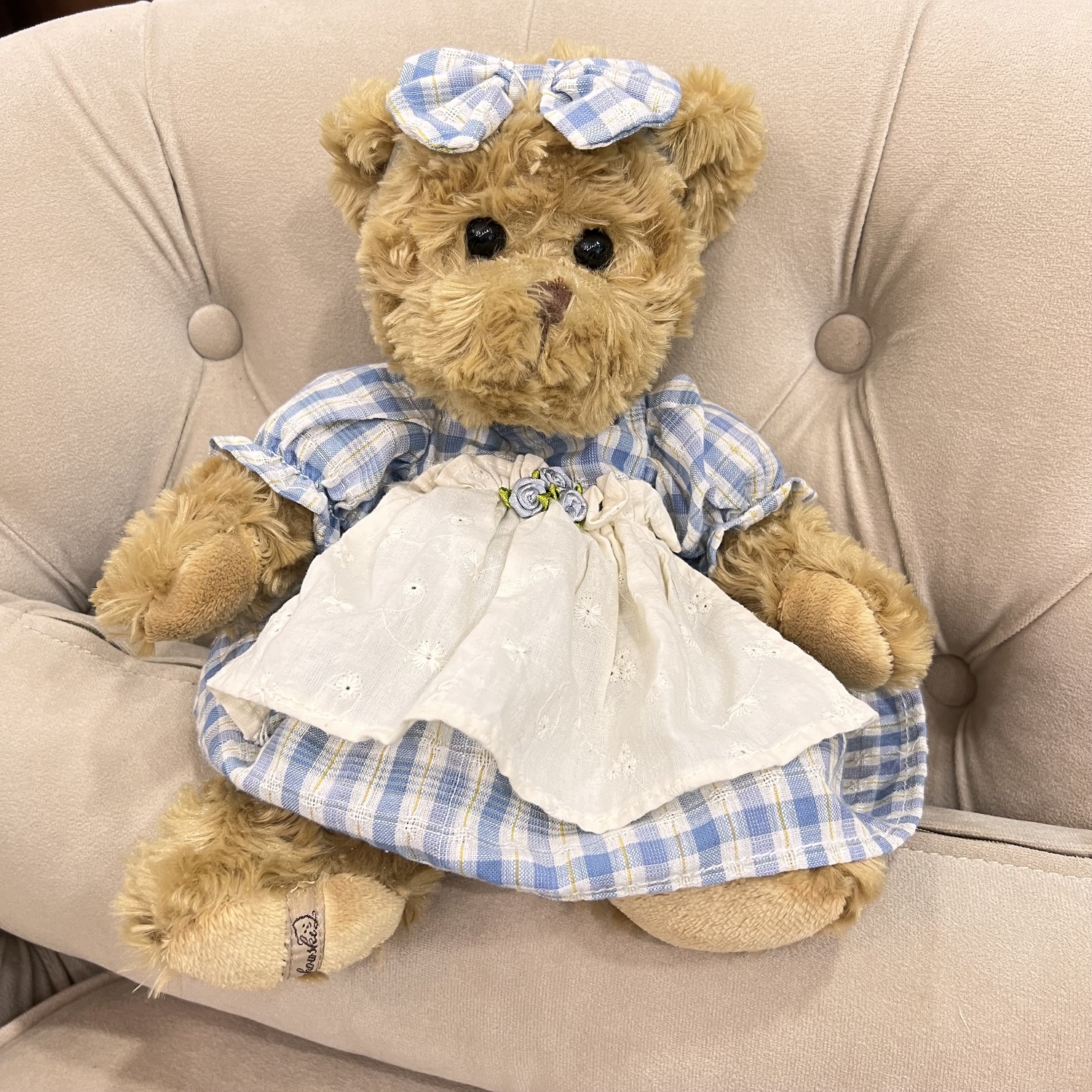 Очаровательная плюшевая малышка, которая достойна того, чтобы пополнить вашу коллекцию мягких игрушек. Клетчатое платьице и бантик делают юную модницу совершенно необыкновенной.