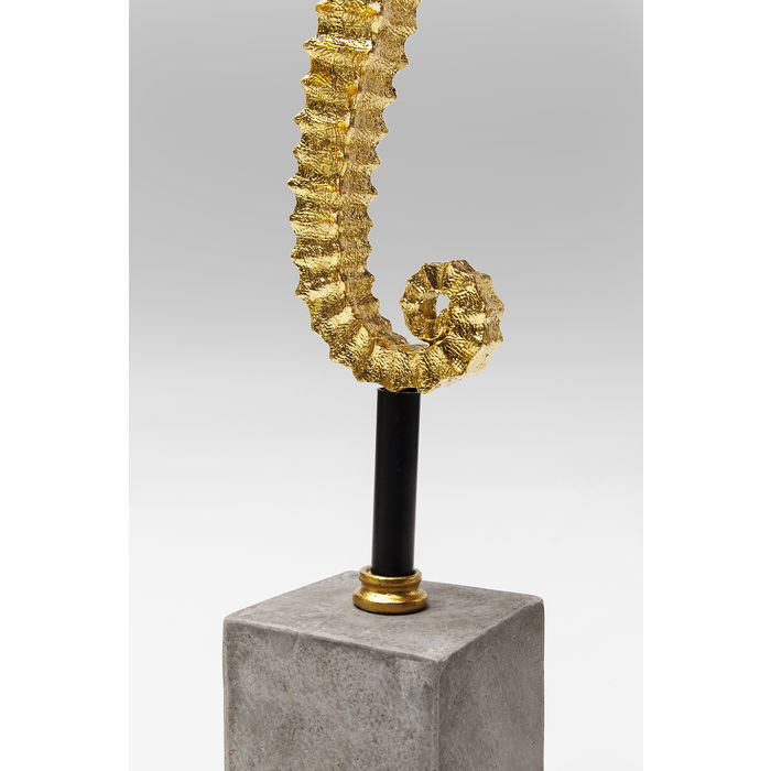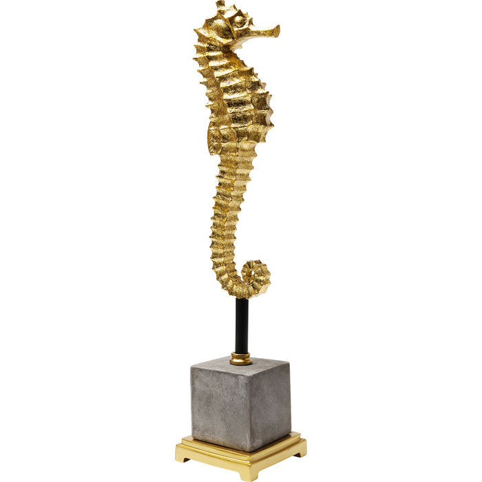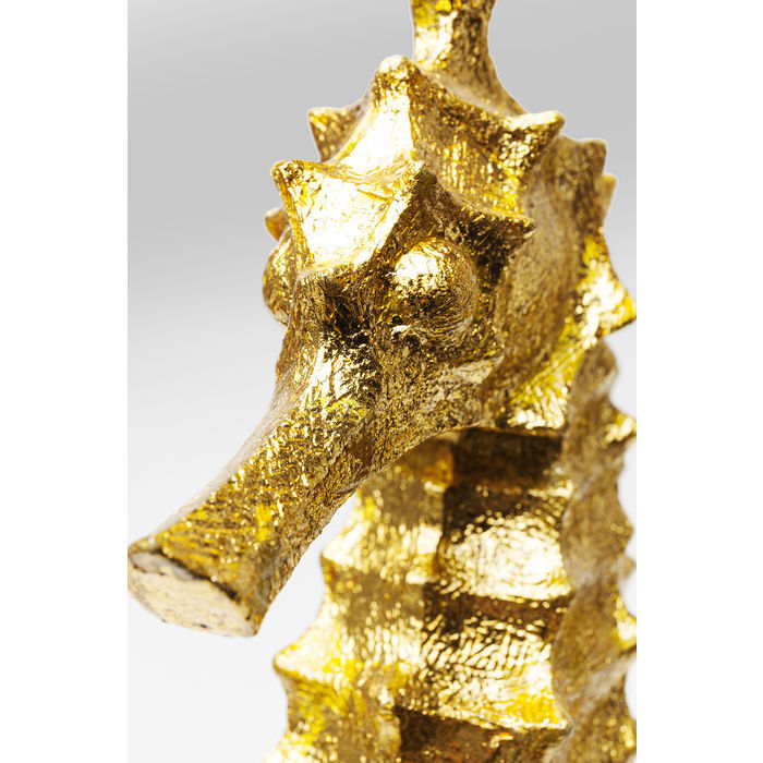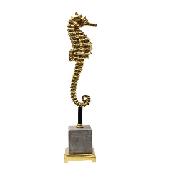 Гламурная скульптура морского конька в золотом цвете довольно впечатляющих размеров. Изюминка для морских аранжировок и милая вещица, которая отлично подойдёт в качестве подарка или талисмана.