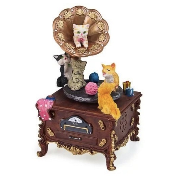 Очаровательная фигурка не только украсит собой изящную этажерку, дамский туалетный столик или полку в детской комнате, но и порадует слух приятной мелодией. Музыкальный сувенир, декорированный фигурками котят, выполнен в приятных пастельных тонах. Он будет приятным сюрпризом для любительницы милых мелочей, из которых и складывается неповторимый домашний уют.