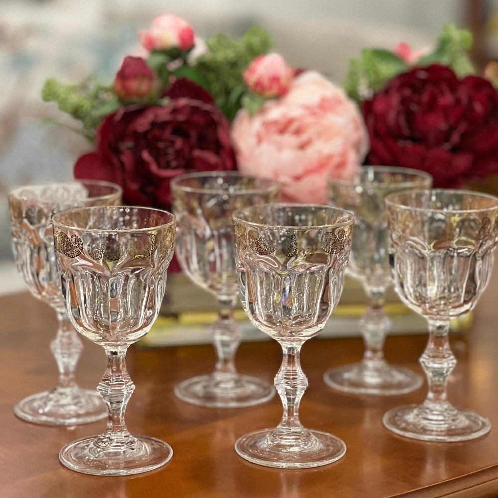 Набор из шести бокалов на ножке с узором "турецкого огурца". Ручная работа.
