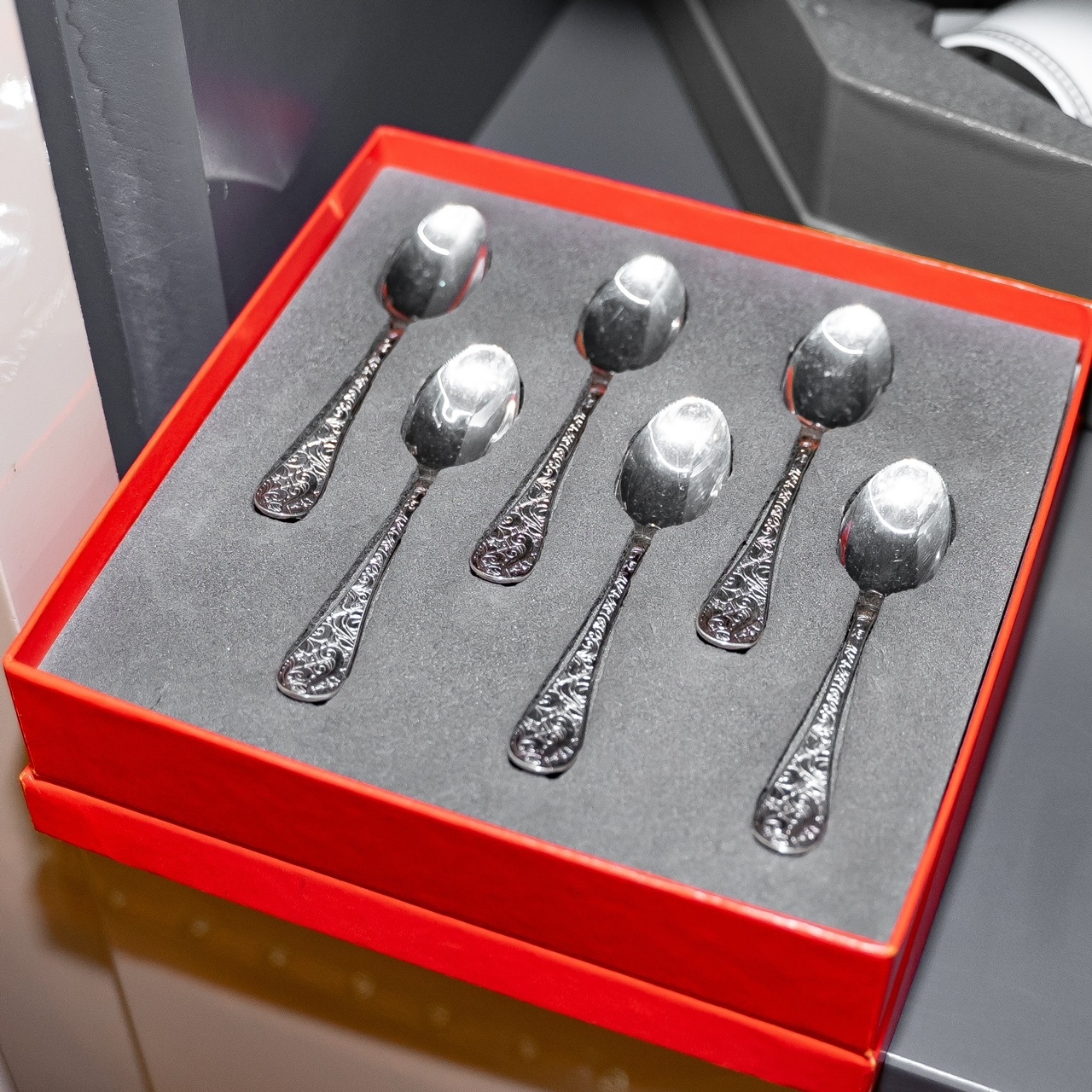 В наборе 6 кофейных ложек с зеркальной полировкой. Ложки сделаны из нержавеющей стали с посеребрением. Посеребрение — визитная карточка известного французского бренда Christofle.