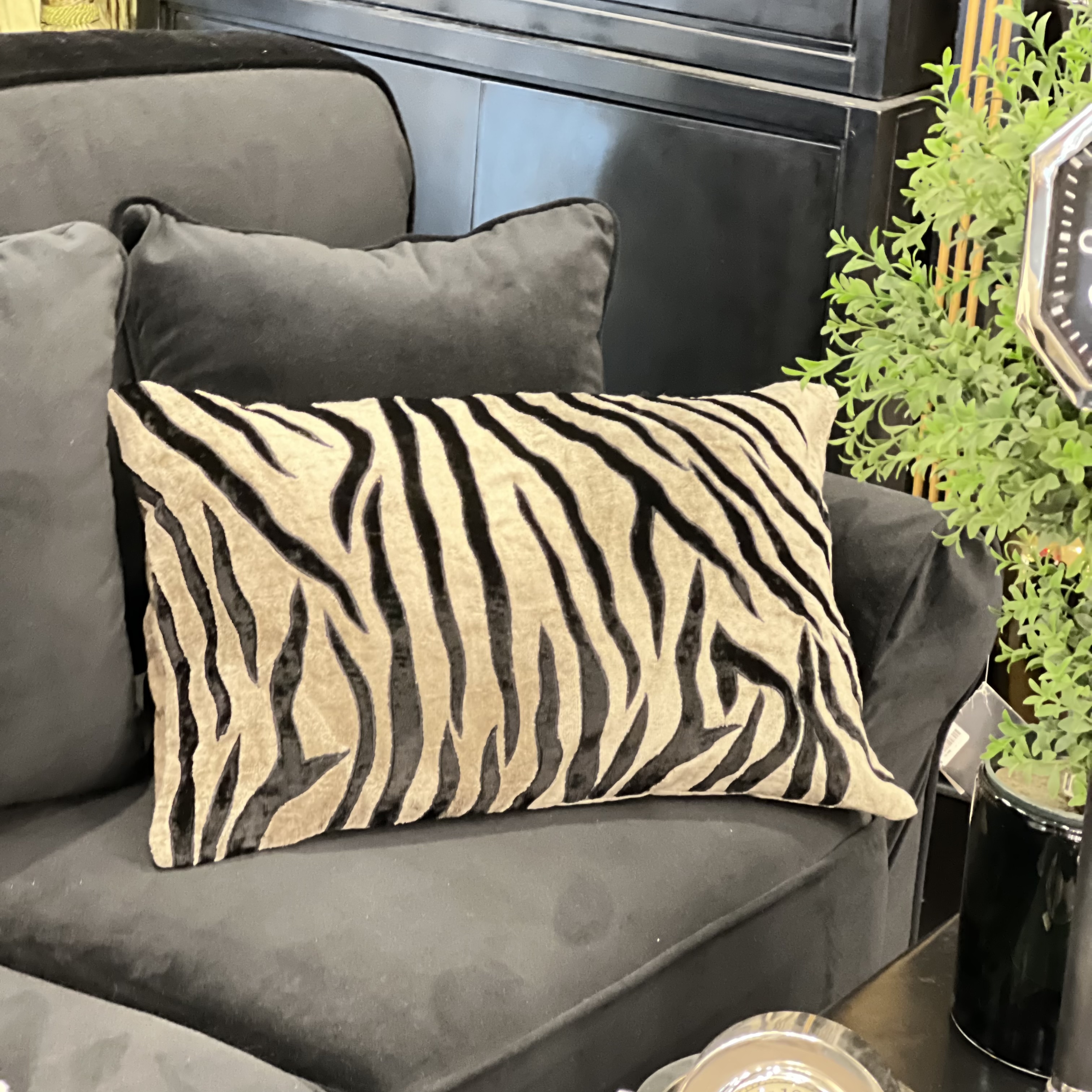 Бархатная наволочка с принтом зербы, приятным на ощупь, снимается, принт остаётся ярким после стирки. Подушку можно использовать для украшения дома и для сна.