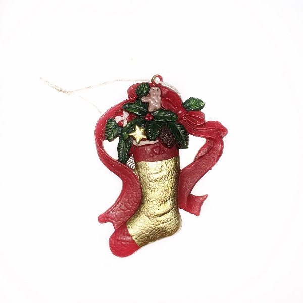 Яркий сапожок с многочисленными подарками символизирует достаток, потому станет достойным акцентом на ёлке.