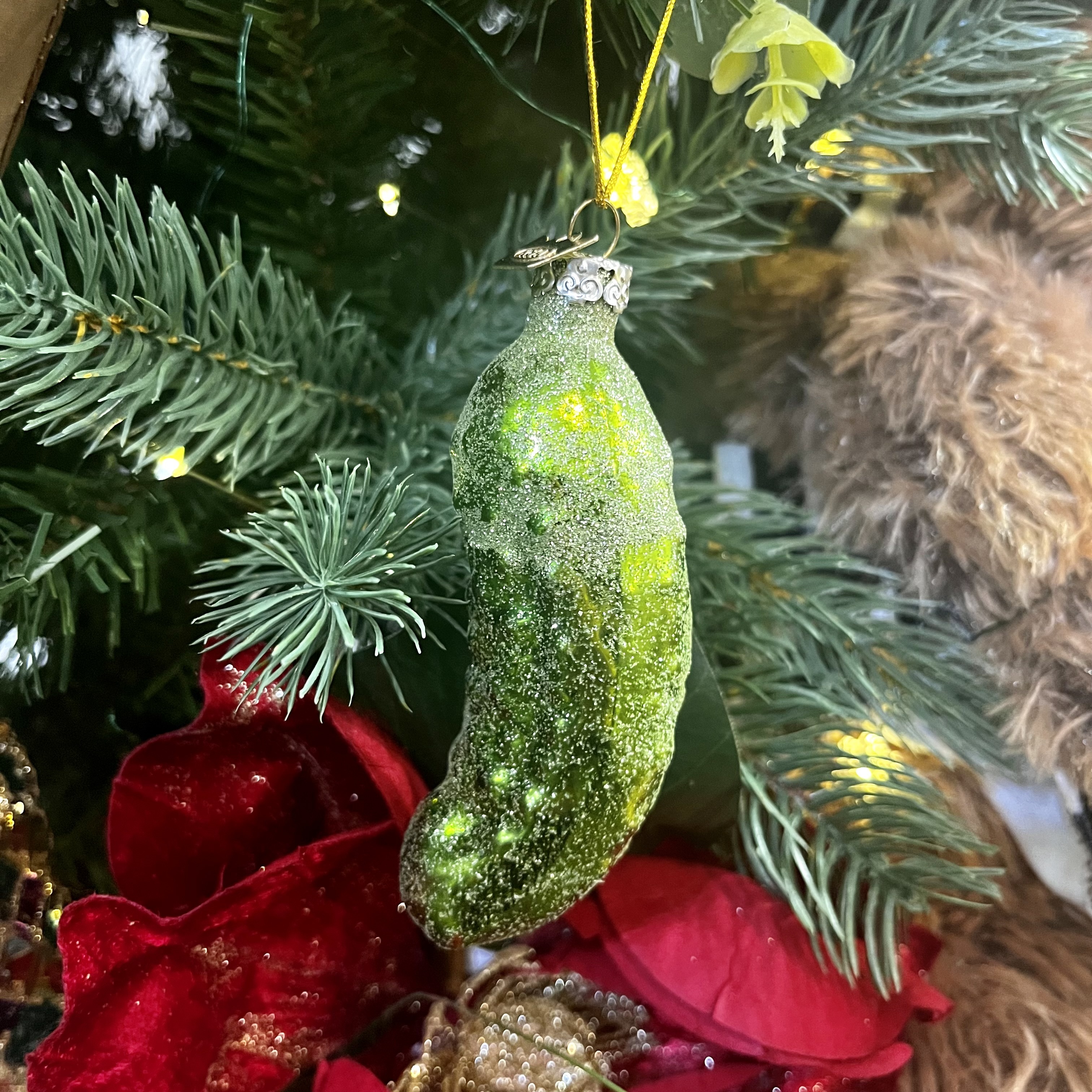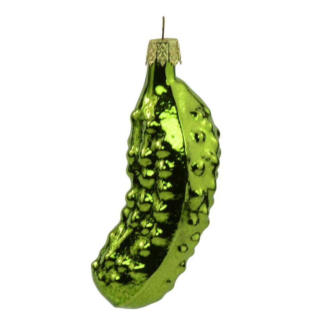 Некоторые могут подумать, что маринованный огурец - это странное украшение рождественской ёлки. Но в Германии малыши старательно высматривают среди ёловых ветвей огурец — вполне аппетитный огурчик, который их родители старательно укрывают среди рождественской хвои. Счастливчик, который обнаружит его раньше других, получает приз в виде ценного подарка. Необычное ёлочное украшение или декор для новгоднего стола, оформленного с юмором - огурец, очень похожий на настоящий.