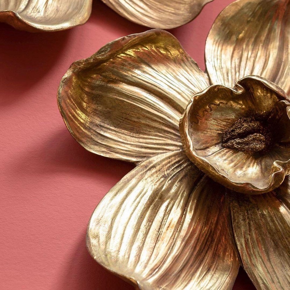 Блестящая золотая орхидея расцветает, как необыкновенное украшение для стен. Ручная работа и античная отделка. Нежные лепестки особенно очаровательны. Декоративная изюминка, которая обеспечит разнообразие на картинной стене. Хорошо смотрится на узорчатых обоях и одинаково выделяется на белых и цветных стенах. Для настенного крепления. Ручная работа.