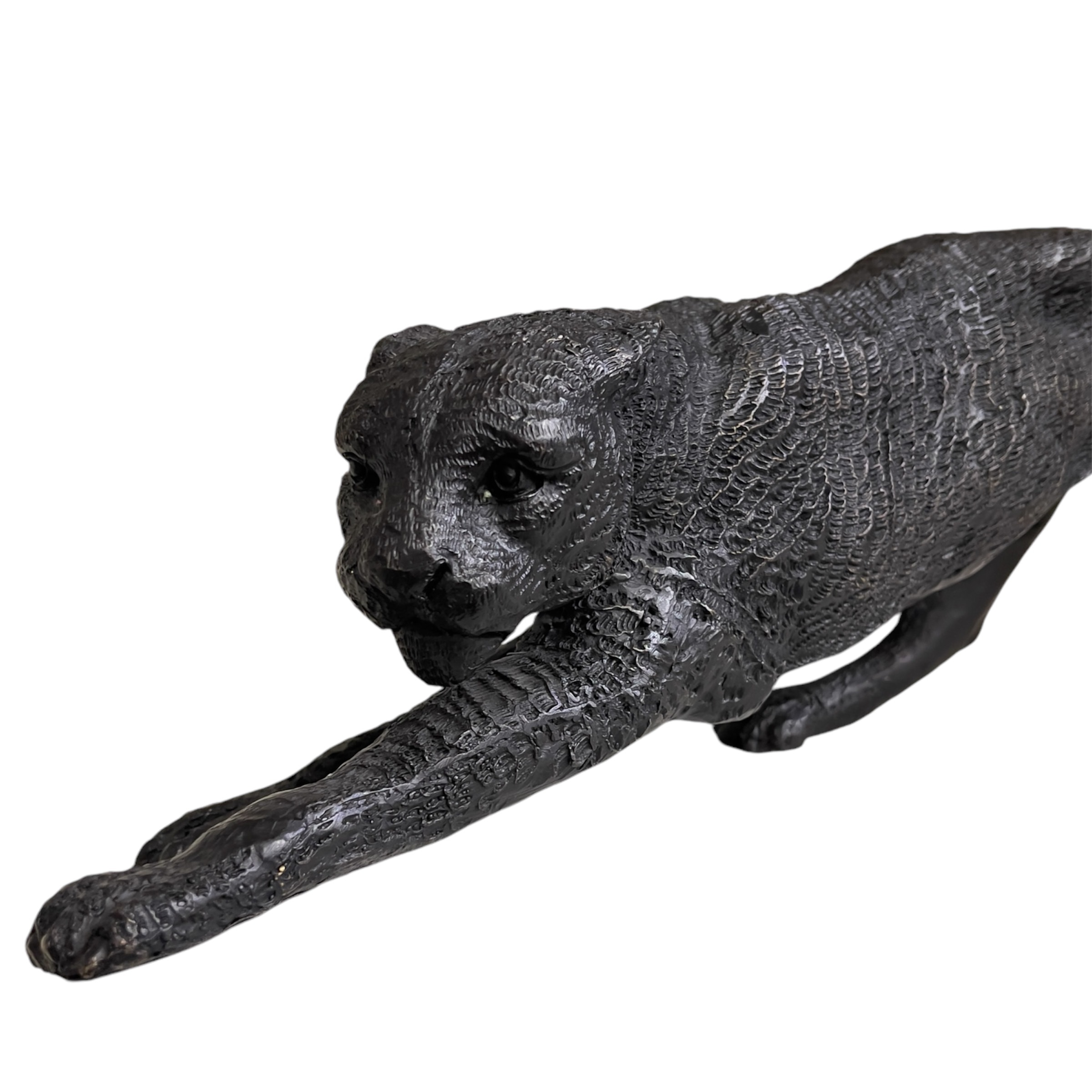 Элегантная статуэтка дикой хищной пантеры из бронзы обязательно привлечёт внимание. Она очень гибкая и изящная. Её грациозностью можно любоваться бесконечно. Пантера является защитным талисманом. Идеально подойдет в качестве декора для просторных холлов гостиницы, офиса или приёмной.