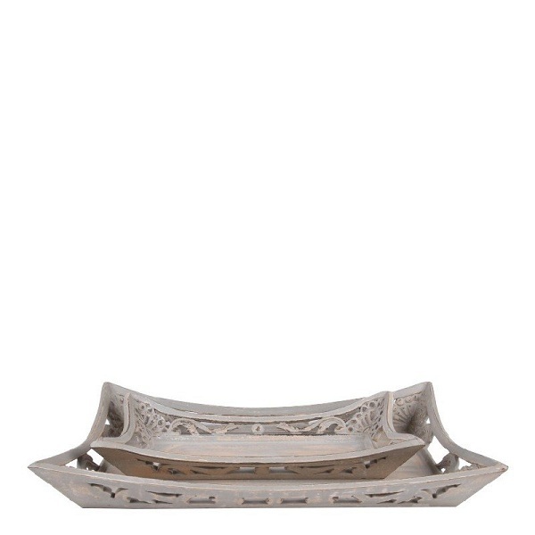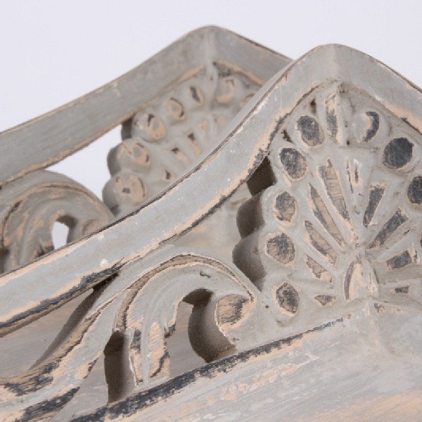 Отличный винтажный деревянный поднос из дерева манго. Сделано вручную и выглядит особенно благодаря резьбе и по дереву и оригинальной форме. Такой поднос можно использовать в качестве сервировочного подноса или для создания красиво декорированной атмосферы.