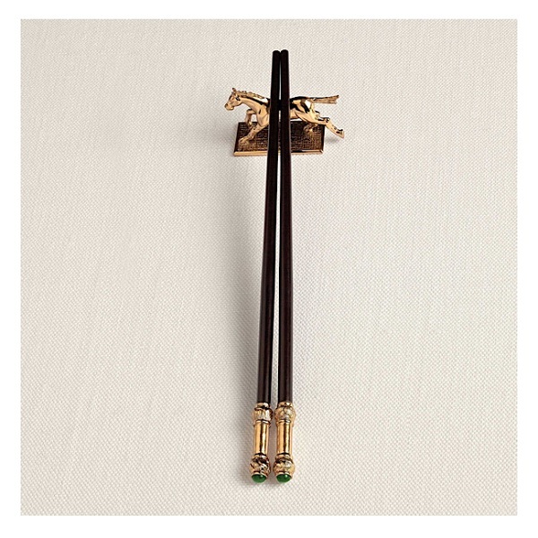 Безупречное исполнение форм предметов из литой латуни с позолочением в 24К придаёт интерьеру и сервировке стола особенный колорит и притягивает взгляд своим богатством и изысканностью. Подставки в форме лошади подходят не только для палочек, но и могут использоваться в качестве подставки для ножей. Набор из шести штук в красивой подарочной коробке.