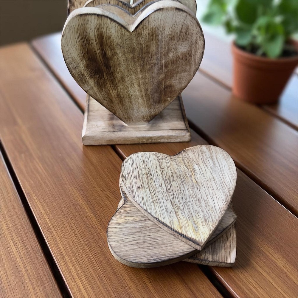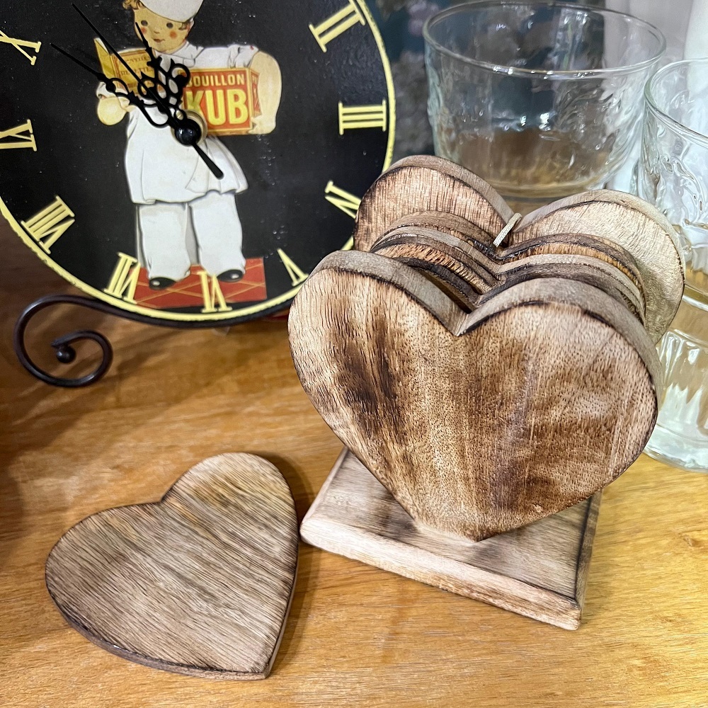 Данные подставки выполнены из дерева в форме сердец. Этот материал является экологически чистым. Низкая теплопроводность дерева позволяет смело ставить на него горячую посуду. Очаровательный дизайн изделия поспособствует созданию на вашей кухне уюта и наполнит помещение домашним теплом.