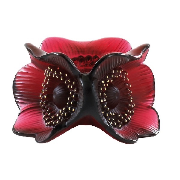 Подсвечник для одной свечи Анемоны сделан из красного хрусталя в виде трёх больших цветов, тычинки которых украшены позолотой. Богатый тёплый красный цвет пробуждает чувства и имеет сильное символическое значение: любовь, жизнь, духовность, энергетика, сильная эмоция, жизнерадостность и оптимизм.