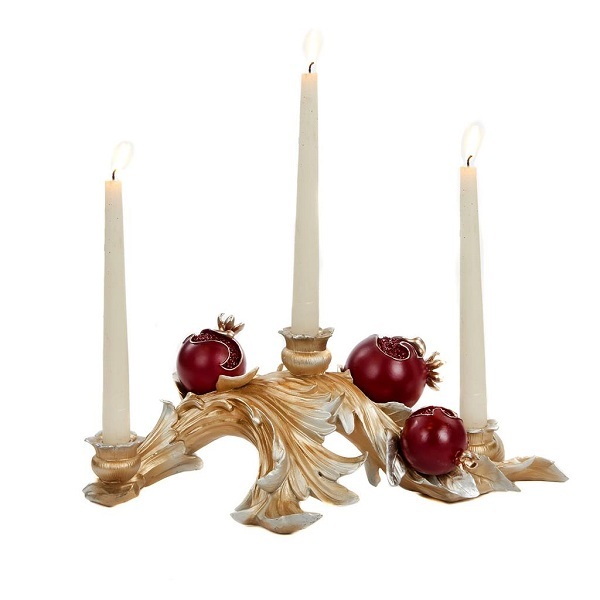 Элегантный подсвечник на три свечи – это не просто предмет декора, а настоящее произведение искусства. Его отличают необычность стиля и использование природных мотивов. Гранаты на ветви выглядят, как настоящие!