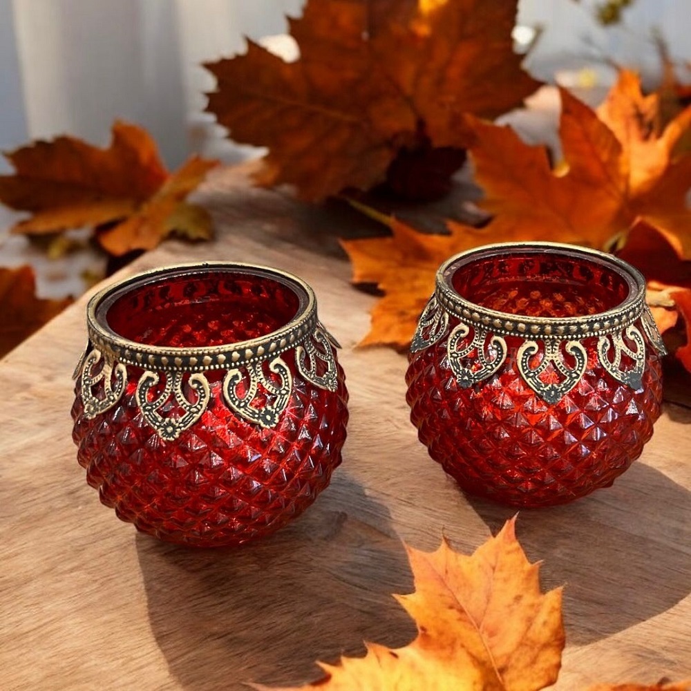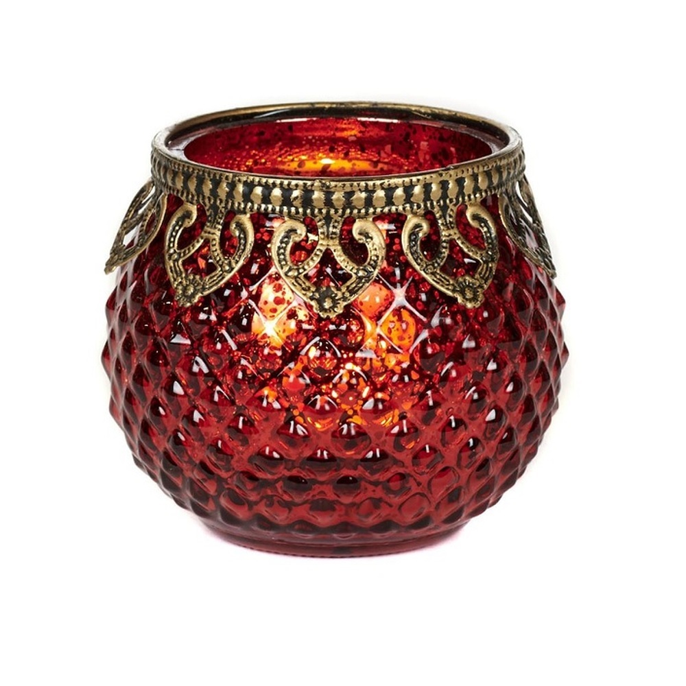 Романтический стеклянный подсвечник красного цвета в винтажном стиле для всех любителей волшебства старины. Необычный аксессуар для дома и подарок любимым людям.