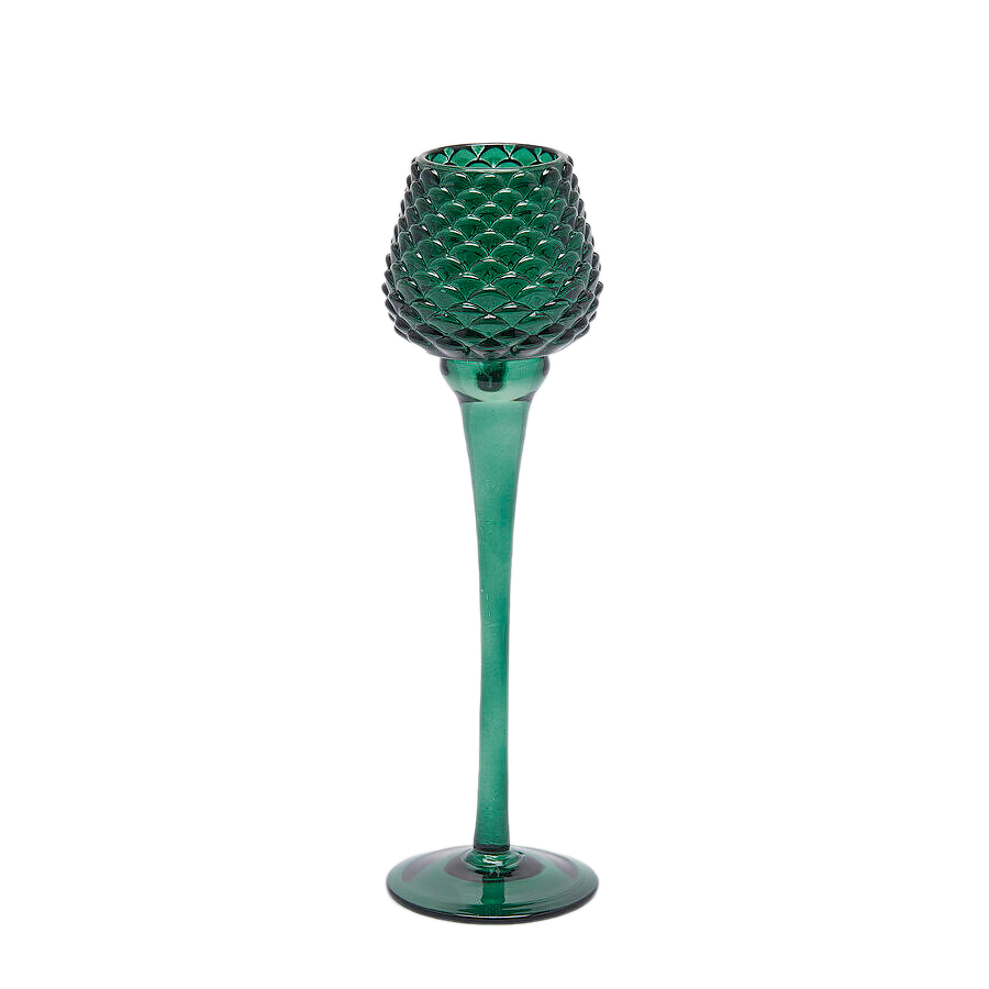 Подсвечник на ножке зелёный 26 см