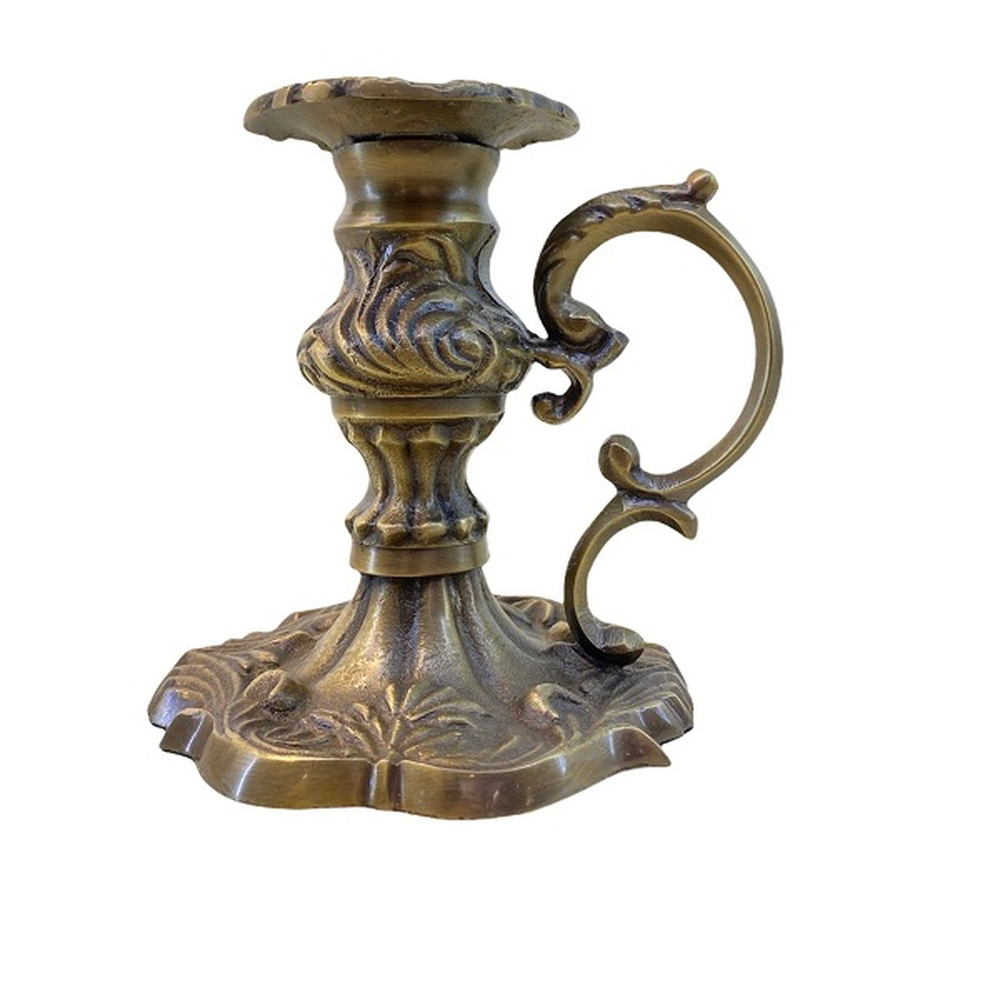 Миниатюрный подсвечник из высококачественной латуни. Подсвечник имеет практичную ручку и круглое основание. Такой подсвечник станет прекрасным дополнением к интерьеру Вашего дома и незаменимым помощником в быту.