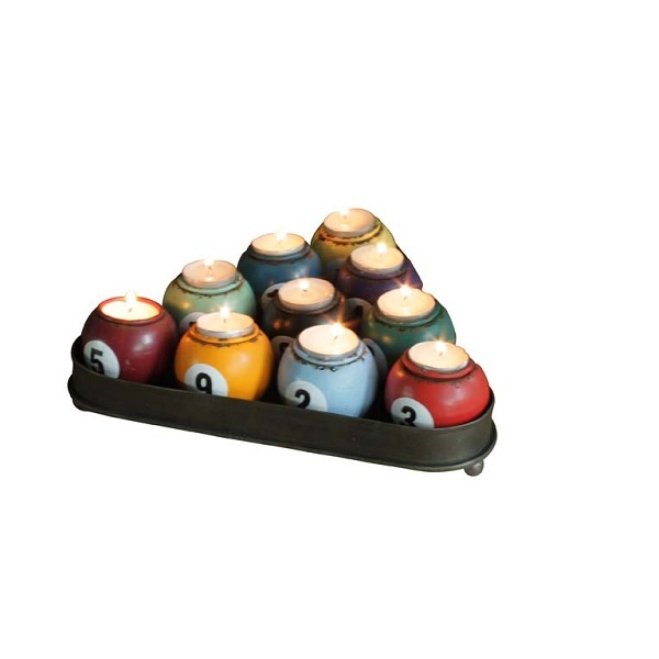 Этот набор подсвечников в винтажном стиле с 10 шарами для бильярда украсит любую комнату, и не только благодаря гоению свечей. Отличный вариант для подарка.