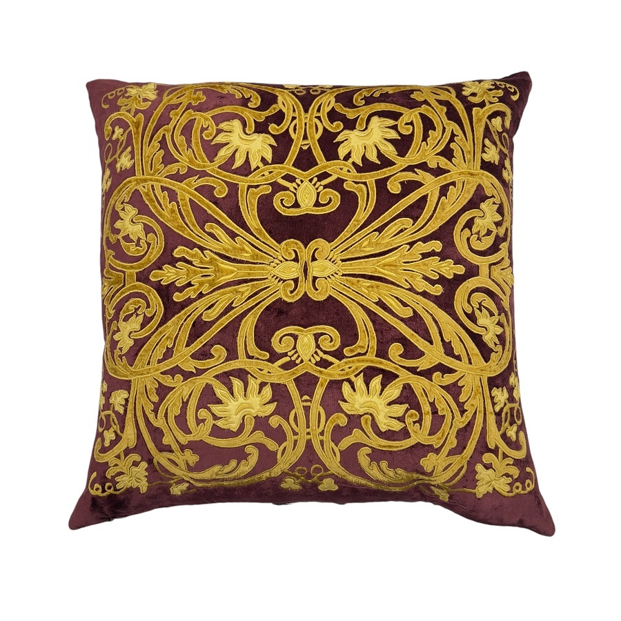 Подушка бордовая бархатная с шёлковой вышивкой, 48х48 см