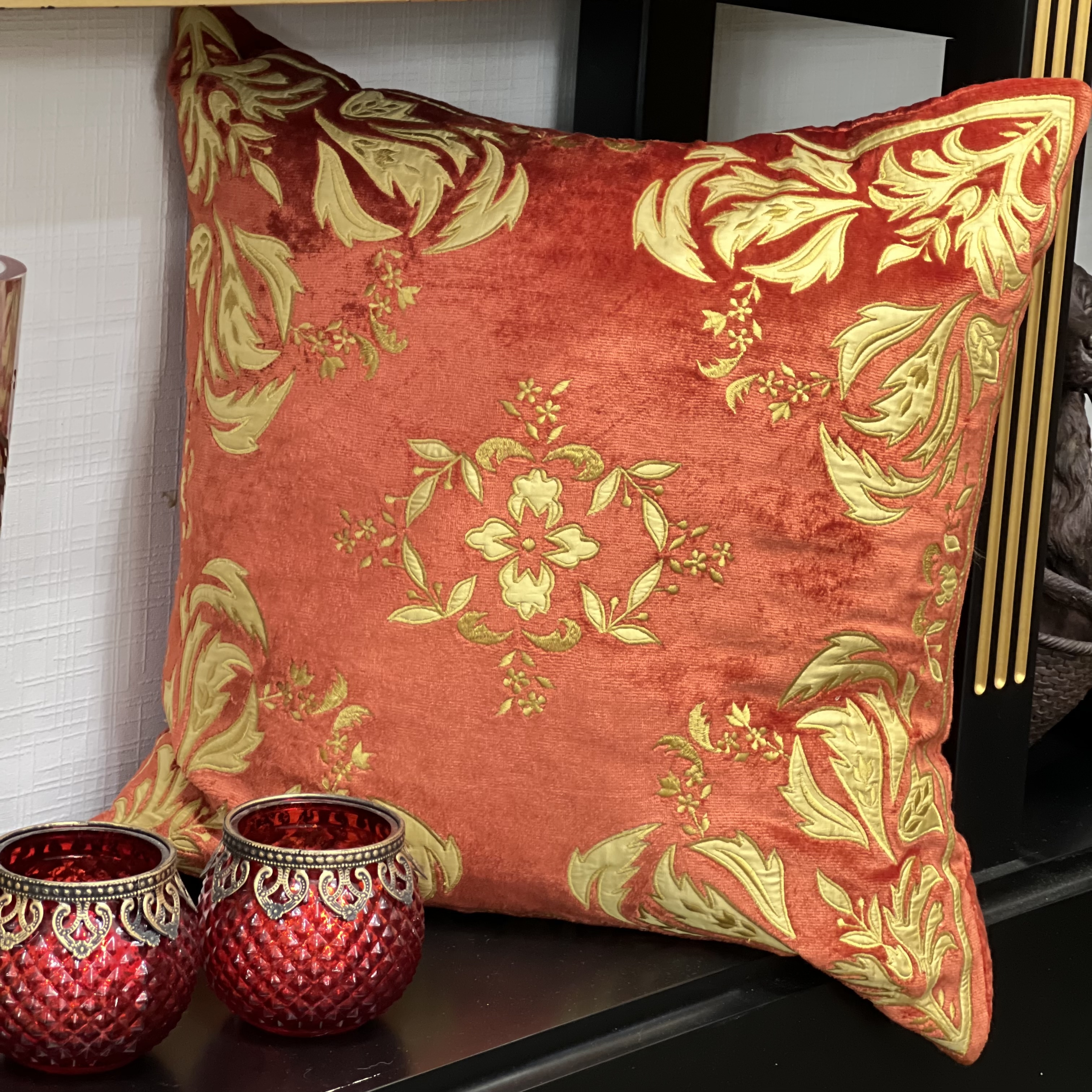 Декоративная подушка от английского бренда English Home, выполненная из высококачественного текстиля в красно-золототых тонах ненавязчего добавит в интерьер нотку роскоши. Вышита вручную.