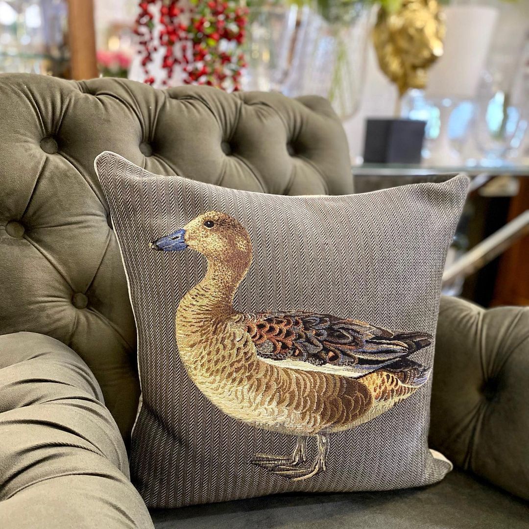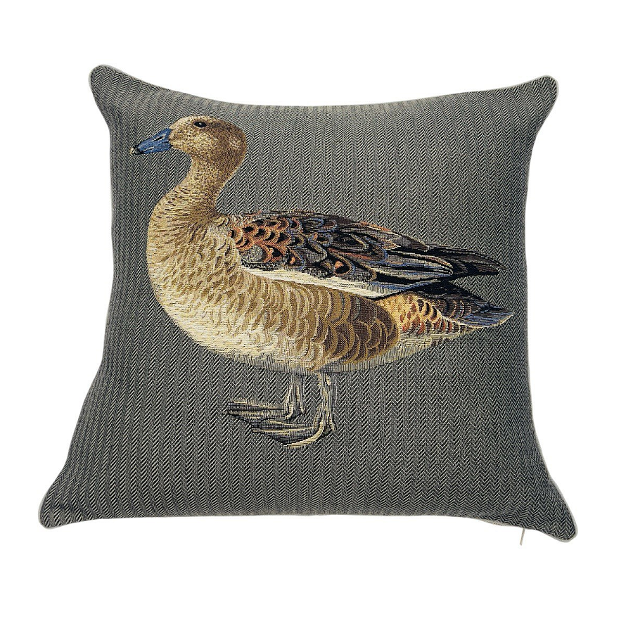 Это декоративная подушка с гобеленовой наволочкой от французского производителя выполнена с изысканностью и утончённостью. На ней изображена утка в классической технике гобелена, с тонкой прорисовкой деталей и богатой цветовой гаммой. Текстура гобелена придаёт изделию богатство и объем, а изображение утки создает атмосферу спокойствия и природной красоты. Эта подушка идеально дополнит интерьер в стиле французский шебби-шик, прованс или классика, добавляя изящества и французского шарма в пространство.