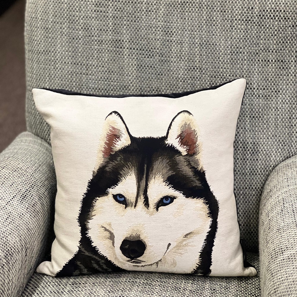 Интерьерные подушки с принтами Хаски внесут яркие акценты в интерьер Вашего дома, офиса, студии. Имеют съёмный чехол,что обеспечивает максимальное удобство в стирке и чистке.
