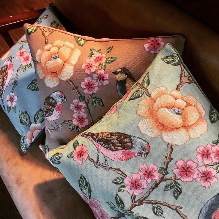 Декоративные гобеленовые подушки украсят строгий интерьер, замечательно смотрятся на винтажных кожаных диванах, создавая яркие цветовые акценты.