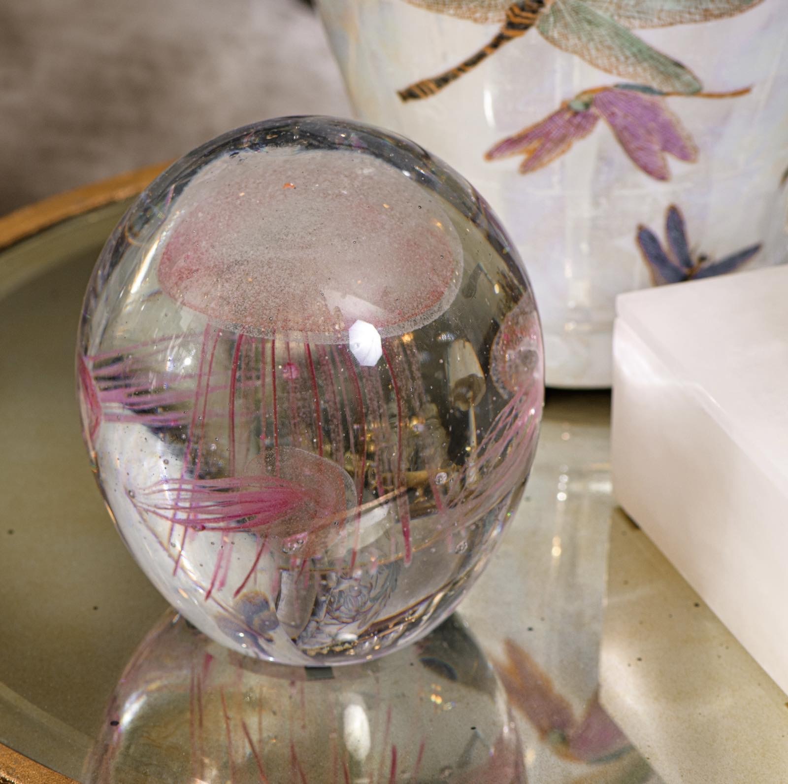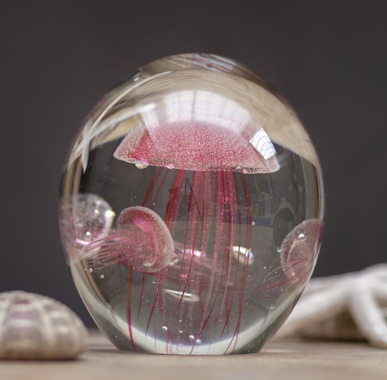 Плавающая в воде медуза - это завораживающее зрелище. Поставьте на рабочий или прикроватный стол запаянное в стекле воспоминание о романтическом отдыхе у края лазурных волн. Можно использовать как пресс-папье.