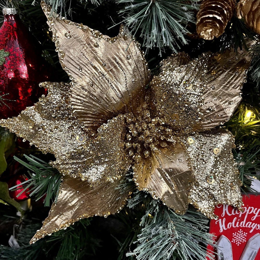 Пуансетия на клипсе золотая [Арт. BR32487]