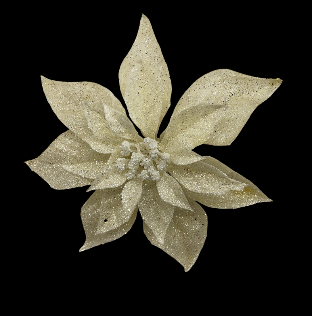 Пуансеттия на клипсе белая 24 см  [Арт.97917]