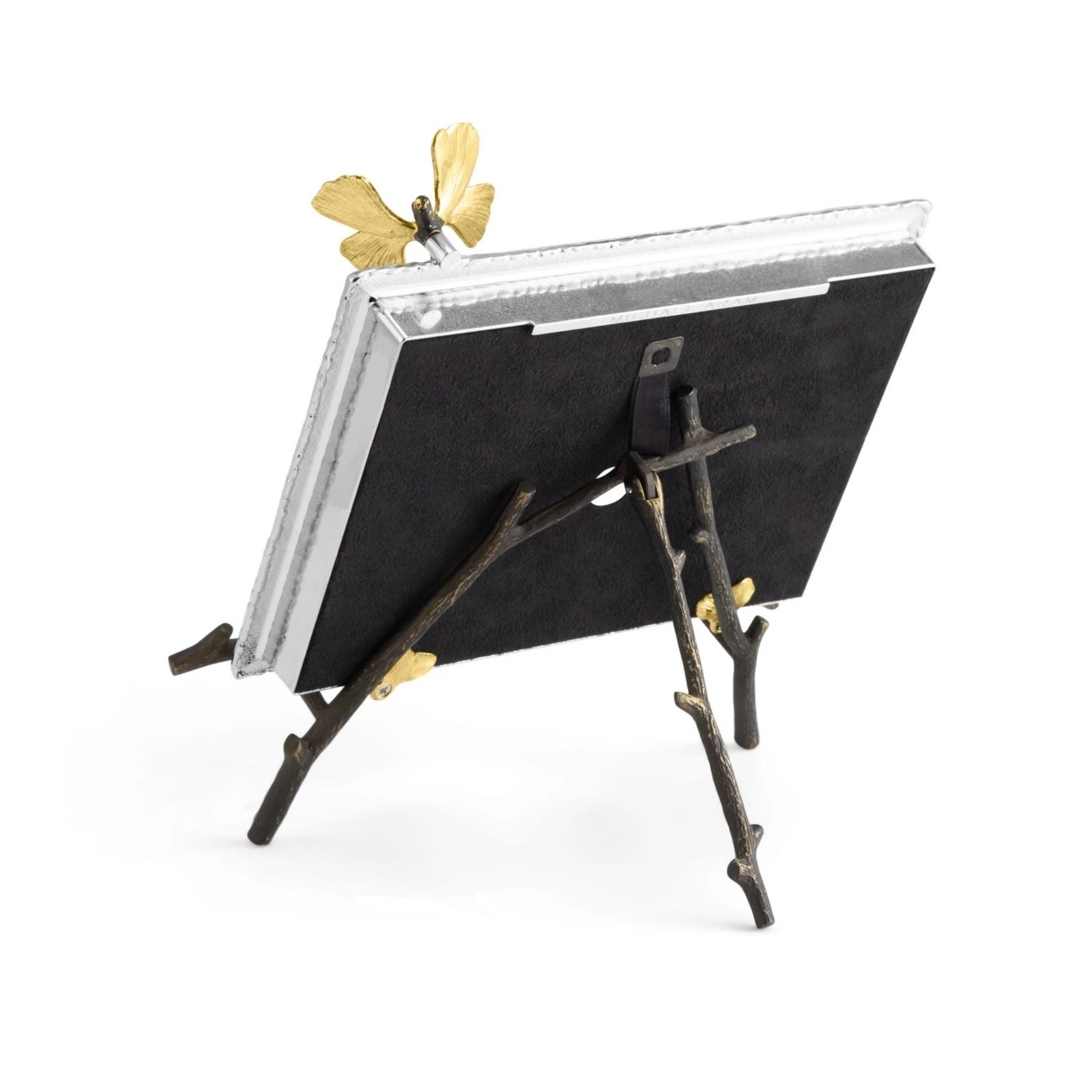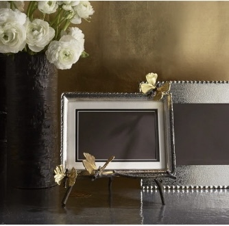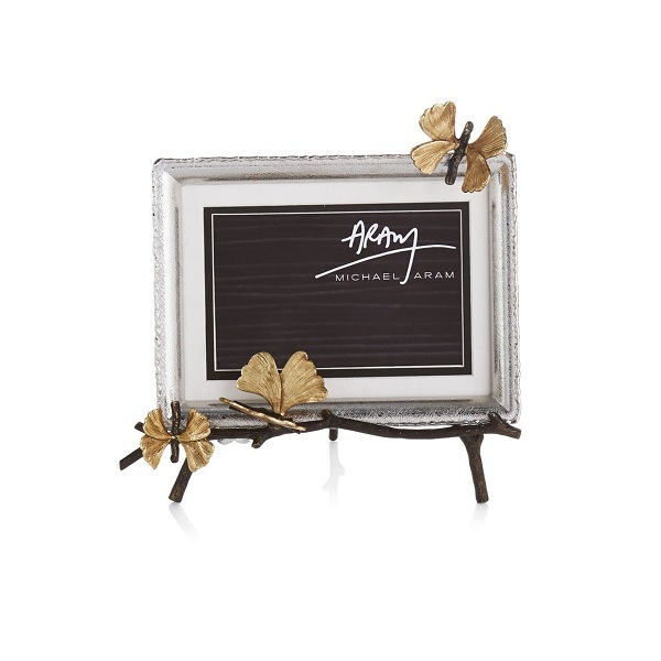 Впечатлением от своего первого знакомства с дивным деревом Гинкго Билоба, листья которого напоминают крылья бабочки, а само оно является современником динозавров и прародителем всех хвойных деревьев. Изумительная дизайнерская фоторамка. Серебристая рама, белое паспарту, подставка в виде веточек дерева и бабочки с золотистыми крылышками выглядят нереально красиво и изысканно. Филигранная тонкая работа и стиль дизайнера узнаются сразу. Это прекрасный вариант элитного подарка - элегантного и женственного. Размер фото: 15х20 см