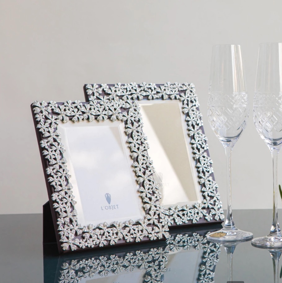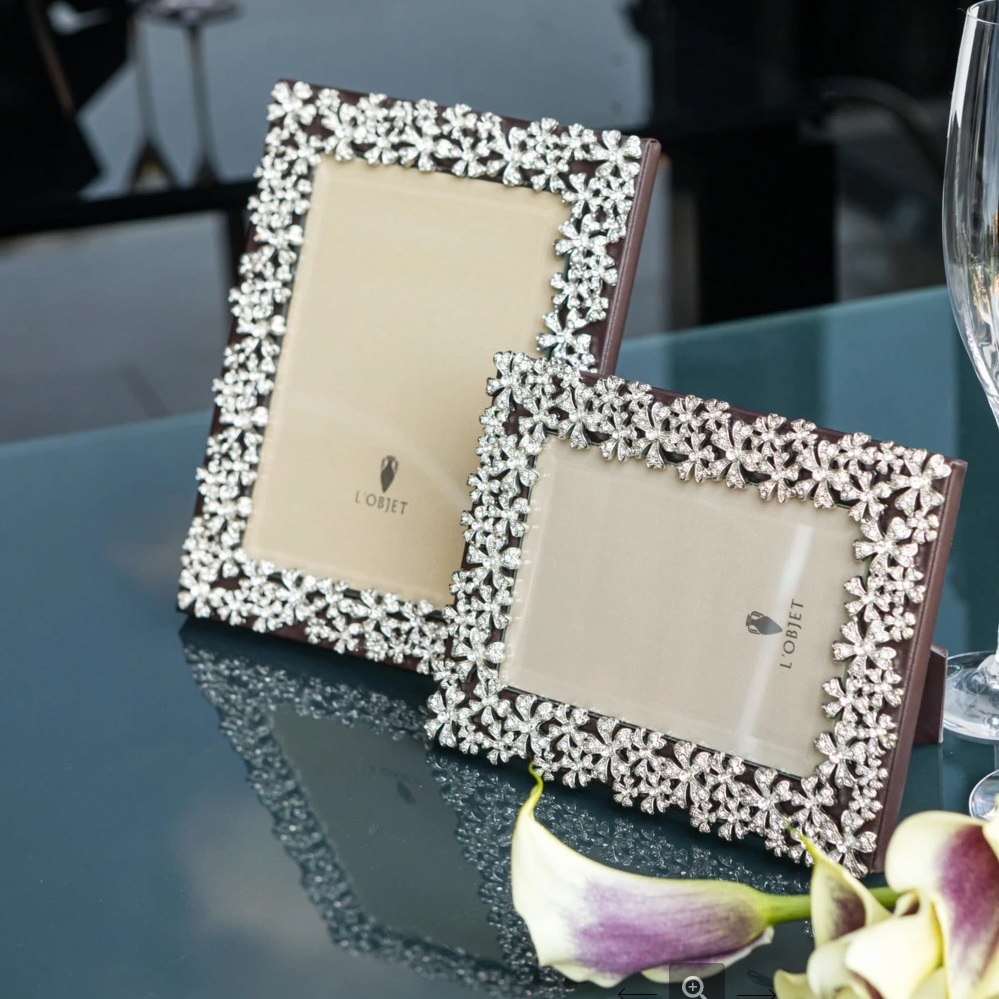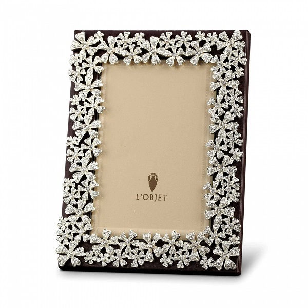 Изысканная фоторамка, кожаное покрытие которой усыпано чудными цветами, изготовленными из меди, покрытыми платиной, и декорированными кристаллами Swarovski, станет настоящей жемчужиной комнаты и прекрасным обрамлением для самых дорогих снимков, бережно хранящих милые сердцу воспоминания. Оригинальный дизайн этой рамки наверняка придется по вкусу любителям стильных и редких вещей. Размер фотографии: 10x15 см