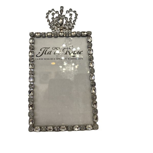 Прямоугольная рамка для стандартной фотографии. Один ряд ярких кристаллов и королевский элемент декора. В такой рамке, увенчанной короной, роскошно будут смотреться кадры с любого торжества, будь то крестины, свадьба или день рождения.
