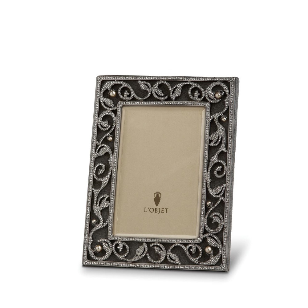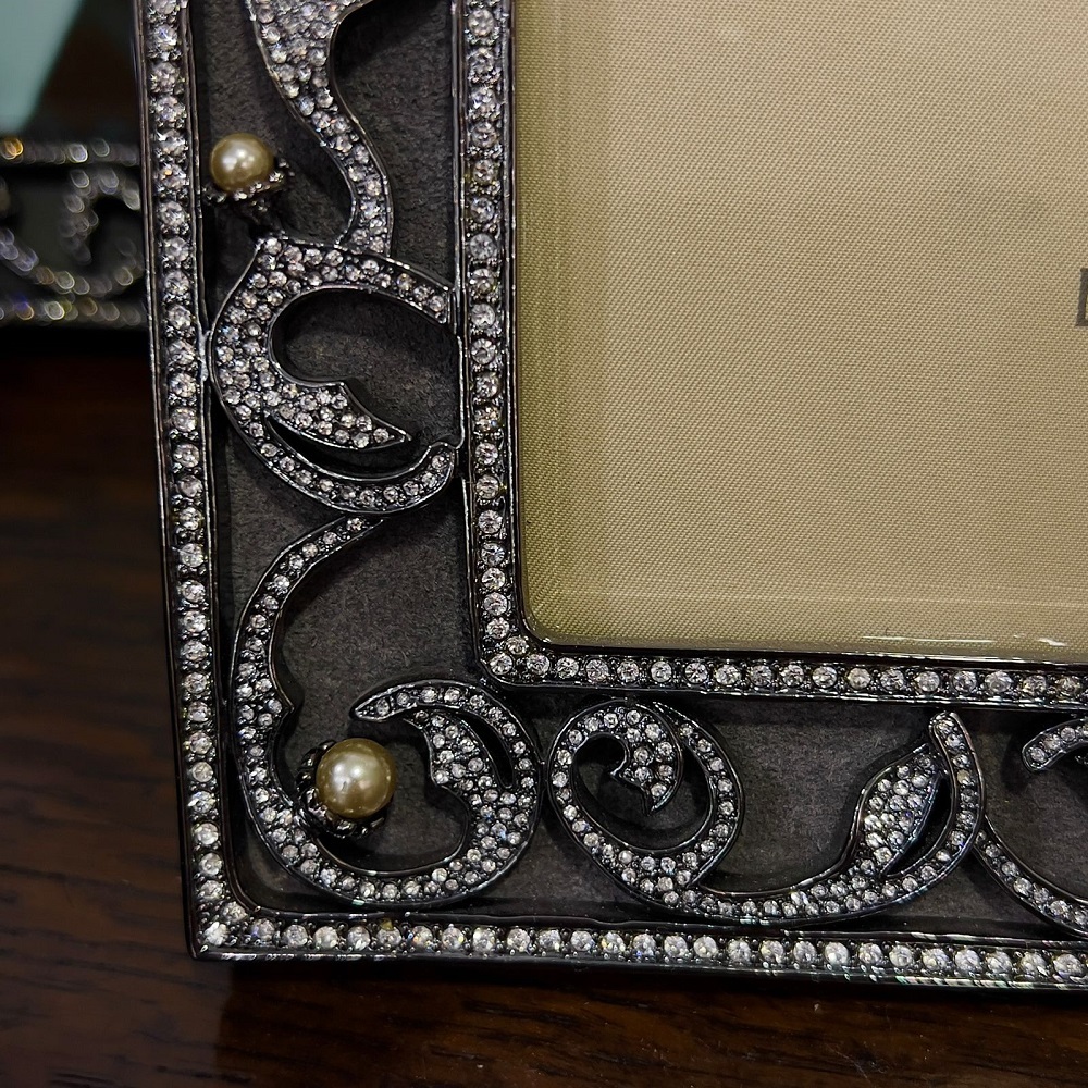 Что для нас фотография? Лишь цветной кусочек бумаги? Или же напоминание о каком-то ярком, счастливом и значимом событии нашей жизни, которое хочется подольше сохранить в своей памяти? Любая фотография дорога нам тем, что возвращает нас во время, которое нам уже никогда не удастся пережить заново. Наружную сторону обитой замшей рамки украшает изысканный орнамент из покрытой платиной меди с жемчужинками и множеством кристаллов в огранке Swarovski. Поместите любимую фотографию в эту рамку, и она украсит ваш дом! Размер фотографии: 10х15 см