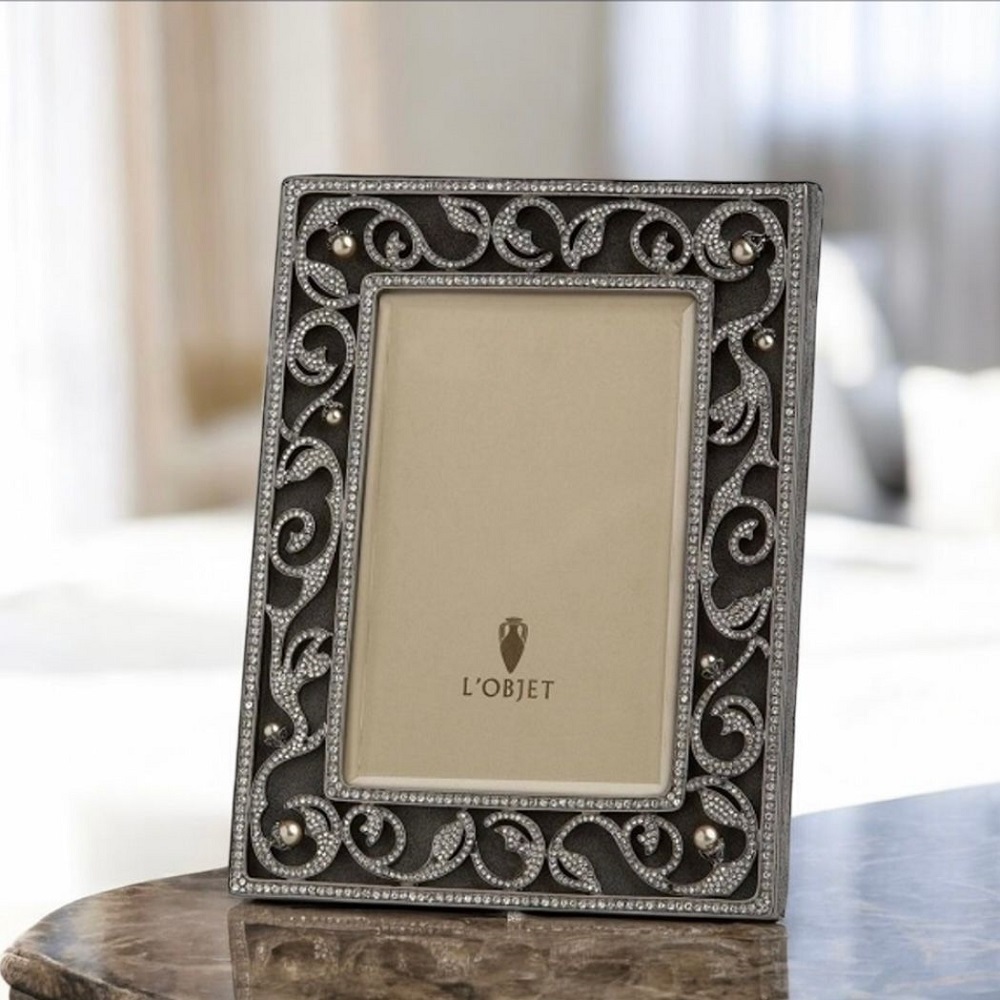 Что для нас фотография? Лишь цветной кусочек бумаги? Или же напоминание о каком-то ярком, счастливом и значимом событии нашей жизни, которое хочется подольше сохранить в своей памяти? Любая фотография дорога нам тем, что возвращает нас во время, которое нам уже никогда не удастся пережить заново. Наружную сторону обитой замшей рамки украшает изысканный орнамент из покрытой платиной меди с жемчужинками и множеством кристаллов в огранке Swarovski. Поместите любимую фотографию в эту рамку, и она украсит ваш дом! Размер фотографии: 10х15 см