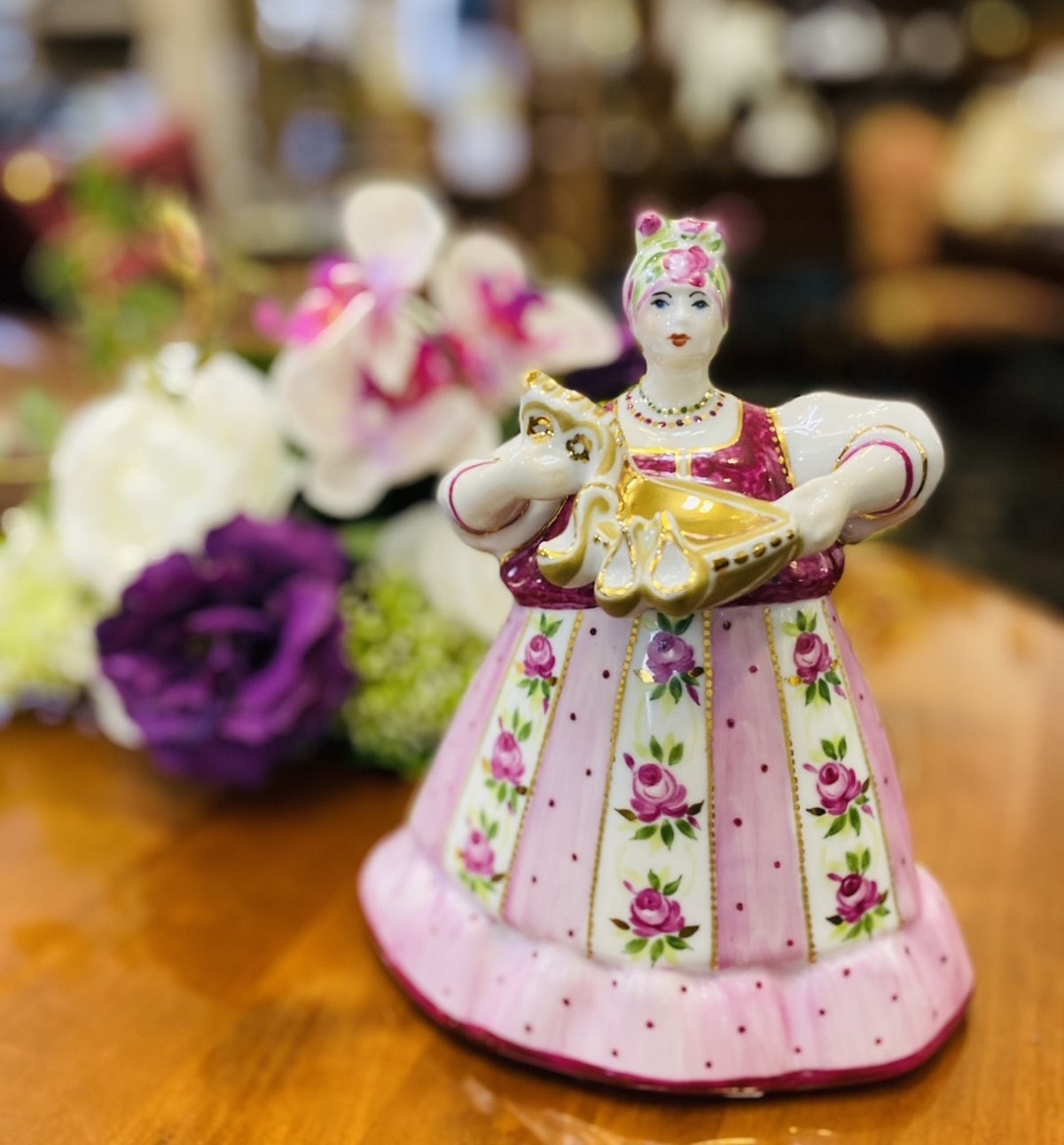 Колоритная дама с ковшом и черпаками для русского напитка - кваса. Статуэтка выглядит эффектно и способна сильно повлиять на восприятие интерьера. Главное, чтобы фигурки, окружающие Вас, Вам нравились, доставляли эстетическое удовольствие, напоминали о каких-то событиях, вдохновляли и наполняли дом уютом.