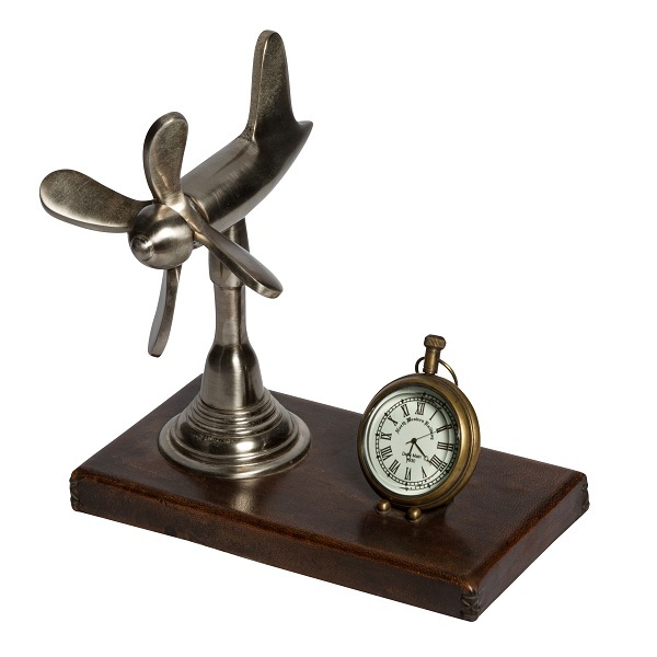 Эта модель самолёта отлита из латуни и оснащена часами на приборной панели. Поставляется на деревянной основе.