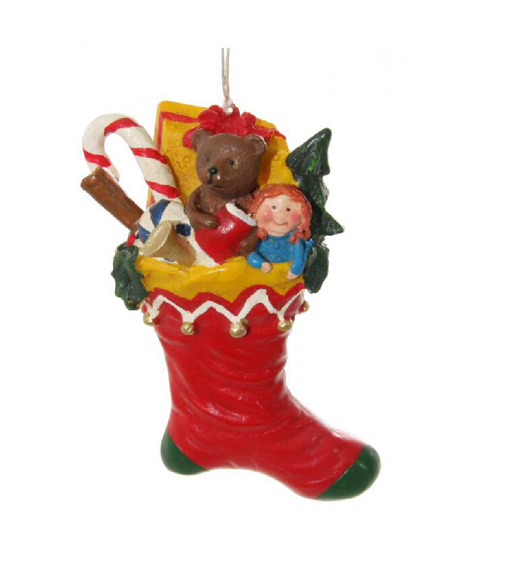 Яркий сапожок с многочисленными подарками символизирует достаток, потому станет достойным акцентом на ёлке.