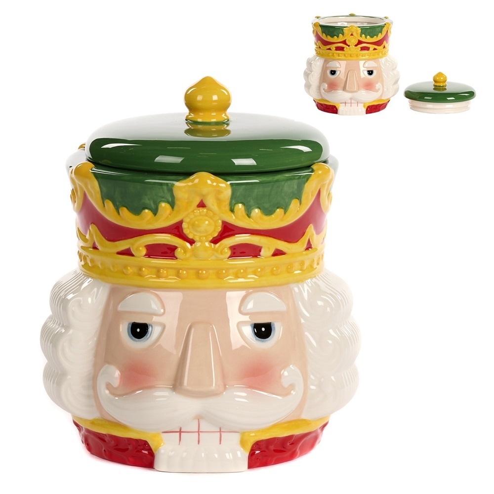 Банка Щелкунчик украшена ярким красочным рисунком. Дизайн, выполненный в ярких тонах с изображением сказочного персонажа - придаст волшебство интерьеру вашего дома. Банка подходит для хранения печенья, конфет и других продуктов.