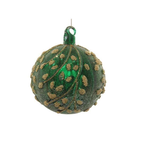 Прелестный шар цвета хвои, покрытой нежным инеем, усыпан золотистыми веточками с изящными листочками, согретыми солнечными лучами. Он подойдёт и как украшение для ёлки и для всевозможных декоративных гирлянд и венков. А также как дополнительный декор при создании всевозможных новогодних декораций.