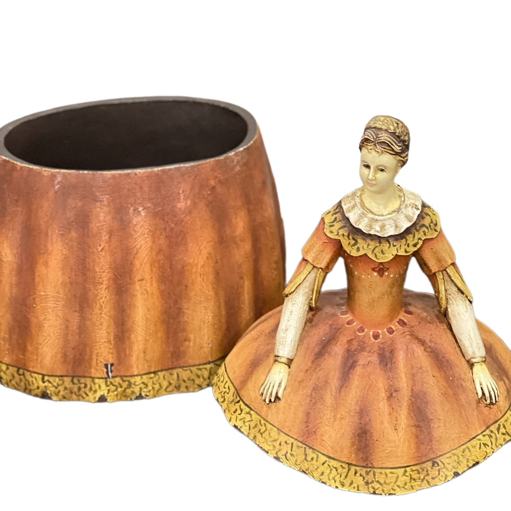 Это изысканный и стильный предмет интерьера, который станет украшением любого дома. Шкатулка выполнена в форме дамы в красивом платье, которая являются символом красоты и элегантности.