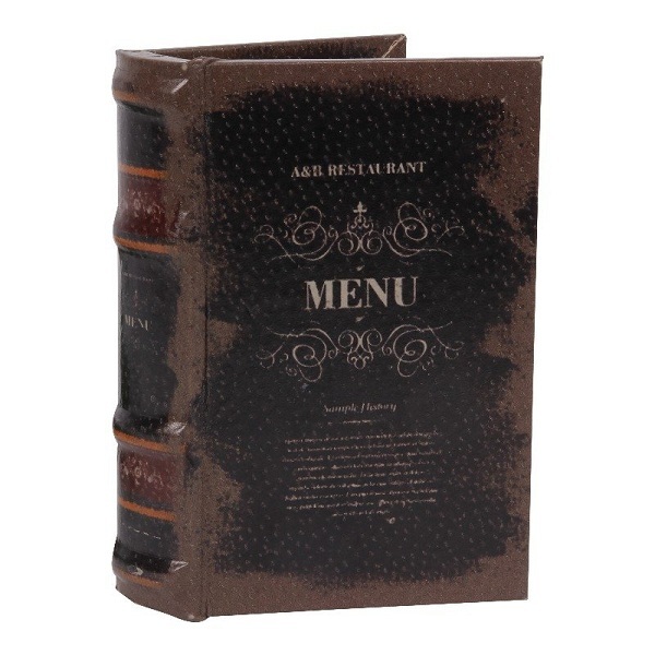 Шкатулка - очень нужная в быту вещь для хранения всех важных мелочей. Шкатулка-книга "Меню" прекрасно подойдёт для этой цели и будет органично смотреться на книжной полке. Отлично впишется в интерьер кафе, ресторана.