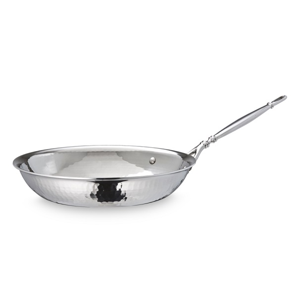 Сковорода идеально подойдёт для приготовления паэльи, тушеных овощей и других блюд. Она оснащена двумя рукоятями для комфортного перемещения с места на место. Посуда изготавливается из нержавеющей стали с узнаваемой фактурной поверхностью. Она равномерно распределяет тепло, гарантируя качественное приготовление каждого съестного кусочка.